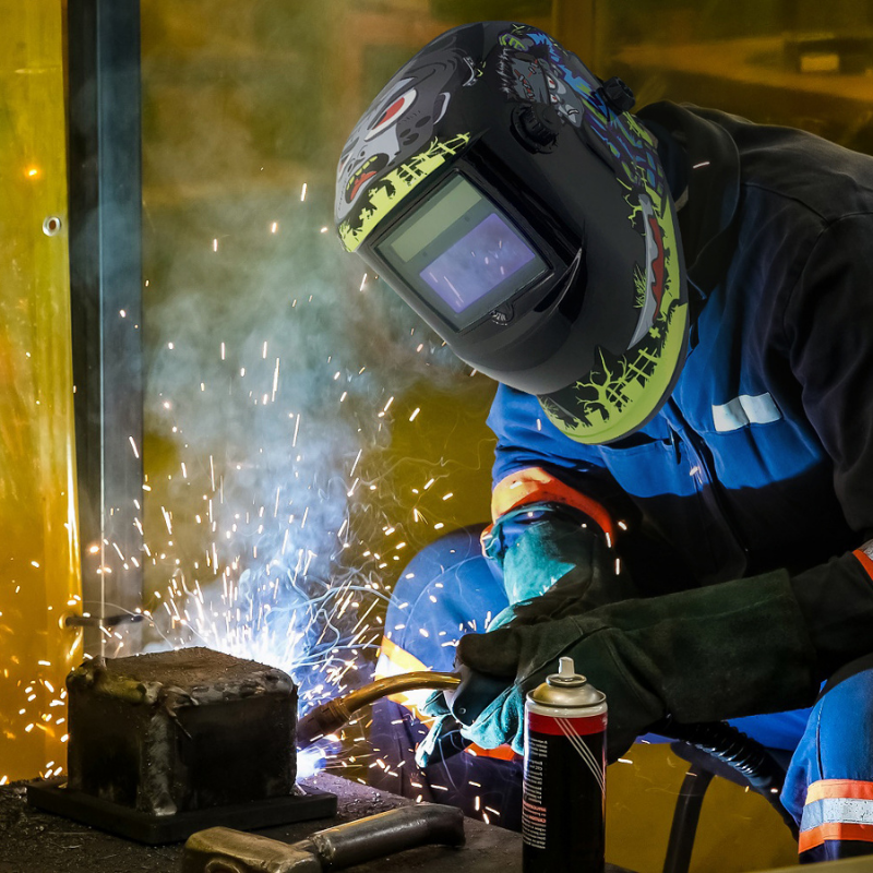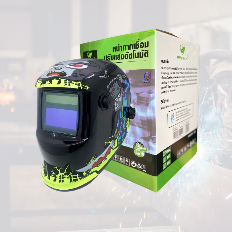 หน้ากากเชื่อมปรับแสงอัตโนมัติ RHINO MAX ผลิตจากพลาสติกโพลีโพรพิลีน (Polypropylene หรือ PP) มีความทนทาน แข็งแรงใช้งานได้ยาวนาน ตัดแสง ได้ไวหน้ากาก ช่วยป้องกันดวงตาจากนควัน และแสงจากการเชื่อมได้อย่างดี มีหน้าจอขนาดใหญ่ สามารถมองเห็นชิ้นงานได้ดีขึ้นใช้ได้ทั้งงานเชื่อมหรืองานตัด เหล็กออกแบบให้เป็นหมวกคลุมศีรษะแบบปรับได้หลายจุด ใช้งานได้อย่างสะดวกสบาย ตอบโจทย์งานเชื่อมทุกชนิด