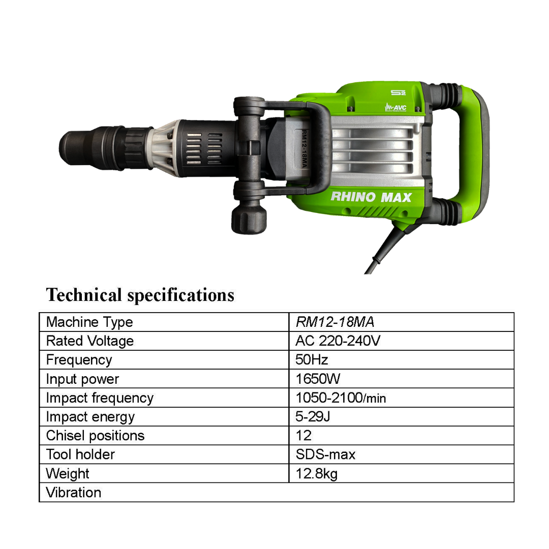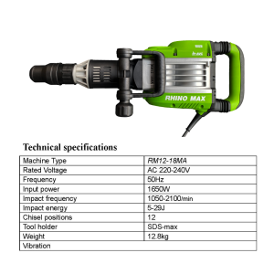 เครื่องสกัดคอนกรีต RHINO MAX รุ่น RM12-18MA (1650W ) SDS MAX