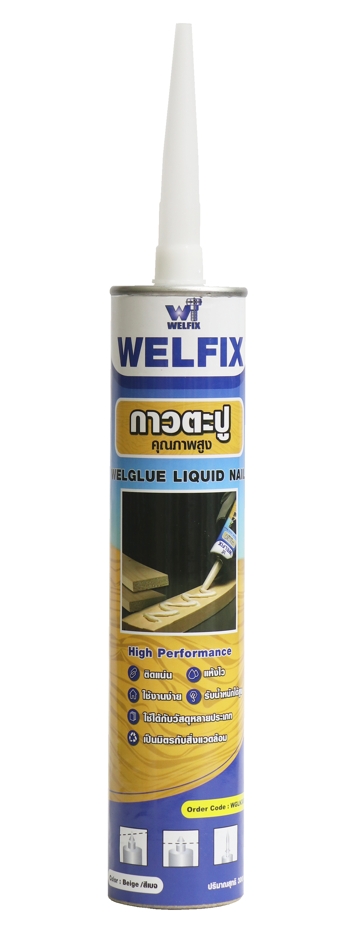 กาวตะปู คุณภาพสูง WELFIX adhesive nail ขนาด 300 มล. รุ่น WGLN300B สีเบจ ไม่ต้องเจาะ ไม่ต้องตอก ติดชั้น ติดผนัง ติดพื้น ติดได้หลากหลาย ให้ความแข็งแรงสูง ใช้คู่กับปืนยิงซิลิโคนได้