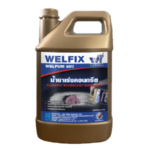 WELPUM 807 น้ำยาเร่งคอนกรีต ใช้สำหรับงานผสมปูนคอนกรีต มีคุณสมบัติในการช่วย เร่งอัตราการแข็งตัวของคอนกรีตให้เร็วขึ้น เพิ่มความหนาแน่นให้คอนกรีต เพิ่มกำลังขัดมากขึ้น ทำให้คอนรีตมีความคงทน แข็งแรง ไม่มีผลกระทบ ต่อการเซ็ตตัว เหมาะสำาหรับโครงสร้างที่ต้องการความรวดเร็วในการก่อสร้าง เช่น ตอม่อ หล่อเสา เทคาน พื้นคอนกรีตต่างๆ