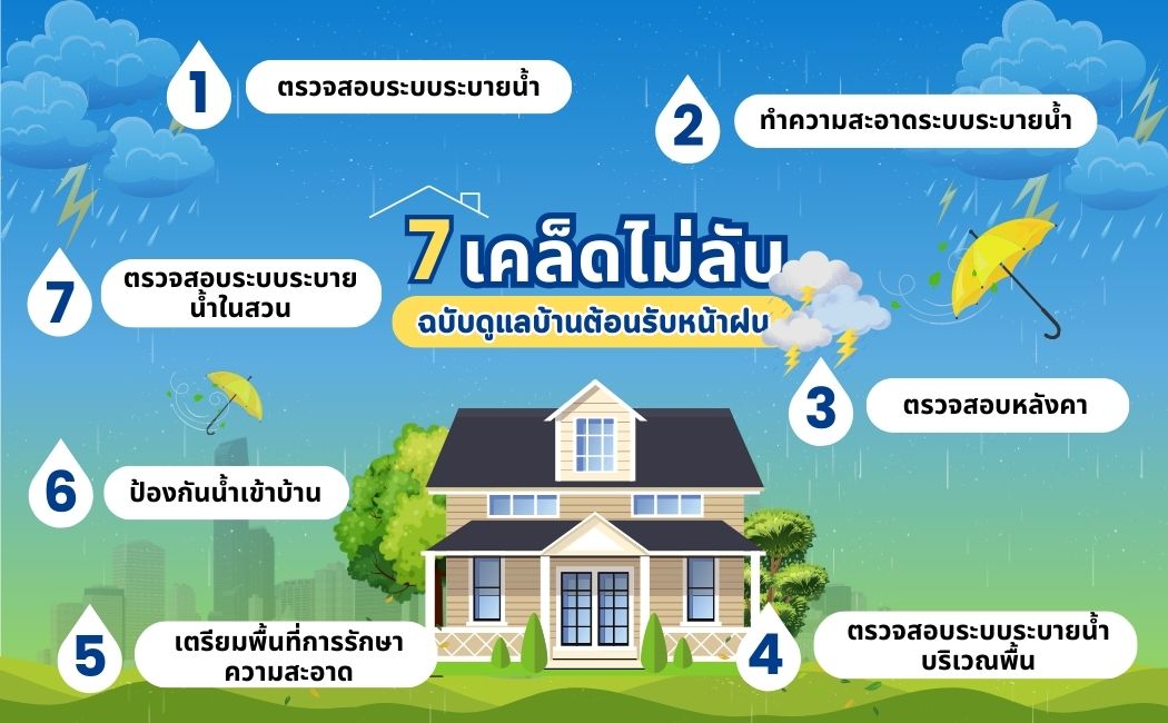 TMAX NEWS 7 เคล็ดไม่ลับ ฉบับดูแลบ้านต้อนรับหน้าฝน 10 May 2024 /Posted bytmaxsite / 898 / 0 การดูแลบ้านในช่วงฤดูฝนสำคัญมากเนื่องจากสภาพอากาศที่เปลี่ยนแปลงได้ไม่คงที่ อาจเป็นปัญหาอย่างหนึ่งที่เจอกันเป็นประจำ ไม่ว่าจะเป็นปัญหาน้ำท่วม น้ำรั่วซึม น้ำขังการระบายน้ำไม่ทันดังนั้นวันนี้เรามี 7 เคล็ดไม่ลับ ฉบับดูแลบ้านต้อนรับหน้าฝน 1. ตรวจสอบระบบระบายน้ำ รับรองว่าระบบระบายน้ำของบ้านทำงานอย่างถูกต้องโดยตรวจสอบท่อระบายน้ำ, รางน้ำ, และระบบระบายน้ำฝน เราควรทำความสะอาดเพราะท่อระบายน้ำเหล่านั้นมักจะมีเศษของใบไม้ หรือโคลนสะสมจนทำให้ท่อระบายน้ำเกิดการอุดตัน ป้องกันการขัดข้อง หรือการกัดเซาะที่อาจส่งผลให้เกิดความเสียหายในฤดูฝน 2. ทำความสะอาดระบบระบายน้ำ ล้างท่อระบายน้ำและรางน้ำให้สะอาดเพื่อลดความต้านทานของน้ำฝนที่ไหลออกมา และลดโอกาสให้เกิดการอุดตัน 3. ตรวจสอบหลังคา ตรวจสอบหลังคาเพื่อตระหนักถึงการรั่วซึมหรือความเสียหายที่อาจเกิดขึ้น โดยเฉพาะในพื้นที่ที่มีท่อระบายน้ำฝนอาจเชื่อมต่อกับหลังคา และตรวจสอบกิ่งไม้ใหญ่หรือต้นไม้ที่อยู่ติดกับหลังคาบ้าน ตัวบ้าน เพราะกิ่งไม้ใหญ่ๆ เหล่านี้อาจจะเป็นปัญหาให้กับตัวบ้าน 4. ตรวจสอบระบบระบายน้ำบริเวณพื้น ตรวจสอบระบบระบายน้ำบริเวณพื้น เช่น ระบบระบายน้ำจากที่จอดรถหรือระบบระบายน้ำจากสระว่ายน้ำ เพื่อป้องกันการท่วมของน้ำฝน 5. เตรียมพื้นที่การรักษาความสะอาด เตรียมพื้นที่เก็บน้ำทิ้งหรือถังน้ำฝนที่มีความจุเพียงพอ เพื่อให้สามารถรองรับปริมาณน้ำฝนที่เกิดขึ้นในช่วงเวลาฝนตก 6. ป้องกันน้ำเข้าบ้าน ตรวจสอบประตูและหน้าต่างเพื่อให้แน่ใจว่ามีการป้องกันน้ำที่เพียงพอ เช่น ที่ประตูน้ำเข้าบ้านและเสาบางของหน้าต่าง 7. ตรวจสอบระบบระบายน้ำในสวน แนะนำให้ตรวจสอบระบบระบายน้ำในสวนหรือพื้นที่รอบบ้านเพื่อให้แน่ใจว่าน้ำฝนไม่ไหลมาท่วมพื้นที่และพืชต่าง ๆ การดูแลและเตรียมความพร้อมให้ดีก่อนฤดูฝนเป็นสิ่งสำคัญที่จะช่วยลดความเสี่ยงจากอุบัติเหตุที่อาจเกิดขึ้นในช่วงน้ำฝนตกลงมา โดยการปฏิบัติตามขั้นตอนดังกล่าวจะช่วยให้บ้านของคุณอยู่ในสภาพที่ปลอดภัยและพร้อมรับมือกับสภาพอากาศต่างๆได้อย่างมีประสิทธิภาพในฤดูฝนนี้! Share Post Facebook อีพ็อกซี่สำหรับงานเสียบเหล็กแล... Related posts TMAX NEWS Read more มาพบกันที่บูธ TMAX ได้ที่งานเกษตรแฟร์ 2567!! 9 February 2024 0 /*! elementor – v3.19.0 – 29-01-2024 */ .elementor-heading-title{padding:0;margin:0;line-height:1}.elementor-widget-heading .elementor-heading-title[class*=elementor-size-]>a{color:inherit;font-size:inherit;line-height:inherit}.elementor-widget-heading .elementor-heading-title.elementor-size-small{font-size:15px}.elementor-widget-heading .elementor-heading-title.elementor-size-medium{font-size:19px}.elementor-widget-heading .elementor-heading-title.elementor-size-large{font-size:29px}.elementor-widget-heading .elementor-heading-title.eleme